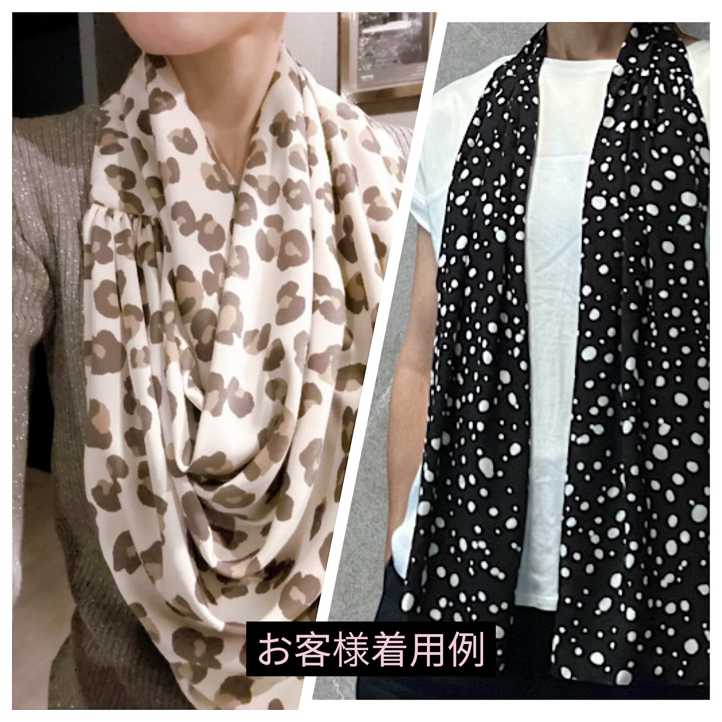 ボタンの留め方で表情が変わり、お出かけのときはストールとして、お食事のときにはエレガントなエプロンとして活躍します。