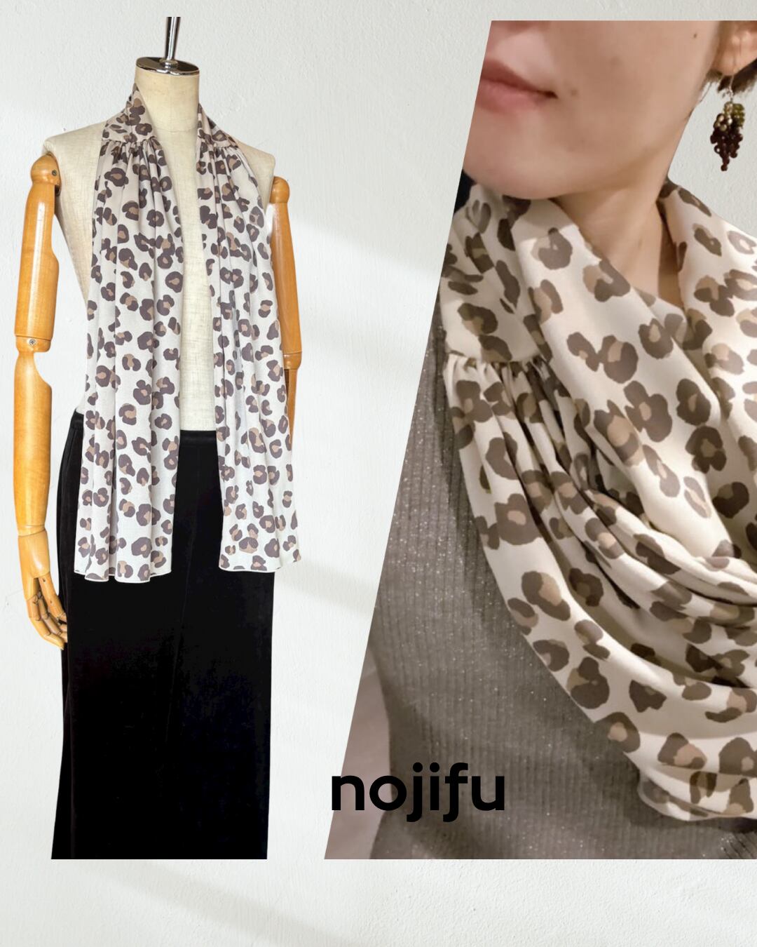 nojifuオリジナルのデザインと、お手入れ簡単な素材を使用しており、おしゃれなストールとしてだけでなく、食事用エプロンとしても活躍するのが特徴です。