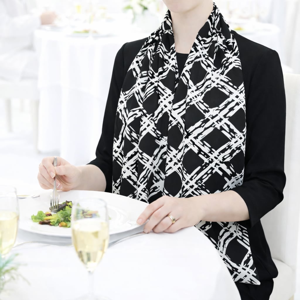 装いにそっと安心感を添える、外食時の汚れを防ぐ大人のためのエプロンストール。