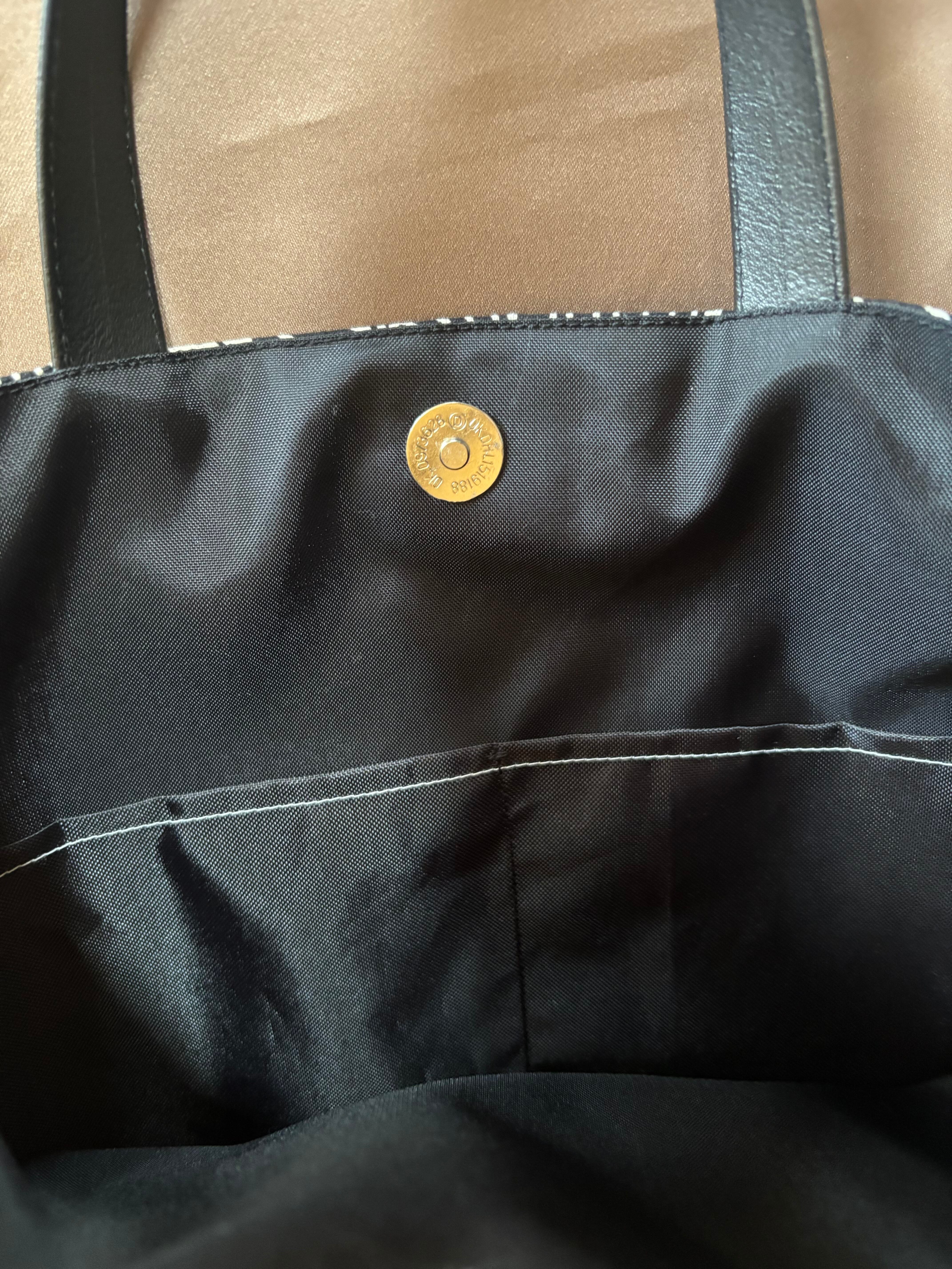 裏地には汚れにくいナイロン生地を使用しているので、一般的なコットンリネンバッグよりもしっかりとした作りに仕上がっています。
